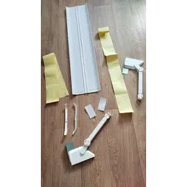 2) После приклейки вспененных плосок нужно в паз экрана вдеть оба кронштейна (см на фото какой стороной). Обратите внимание на белые крепления с металлическими уголками - у них есть длинная, короткая, скошенная сторона - по ним ориентируйтесь.