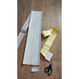 1) Нужно с внутренней стороны экрана приклеить эти две полосы (см фото), при этом отступить от торцов по 15мм (чтобы потом наделись торцевые заглушки). Прикатывать ленты нужно войлочным или резиновым ракелем, или хотя бы кредитной картой - иначе будут пузыри и складки. Эти вспененные ленты предотвращают образование конденсата на наружной стенке экрана.
