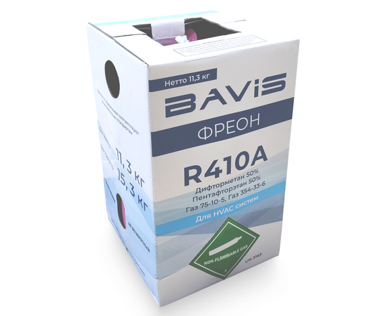 Фреон BAVIS R410A — это современный хладагент, который широко используется в системах кондиционирования воздуха и тепловых насосах. Он представляет собой смесь дифторметана (50%) и пентафторэтана (50%), что делает его более экологически безопасным по сравнению с традиционными хладагентами, такими как R-22.