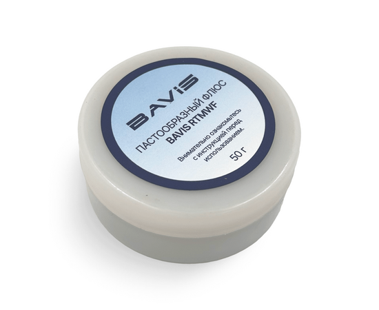 Флюс BAVIS RTMWF пастообразный, водорастворимый, для пайки изделий из меди и ее сплавов, никеля, углеродистых сталей медными и медноцинковыми припоями.