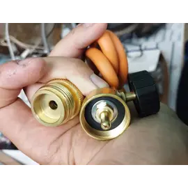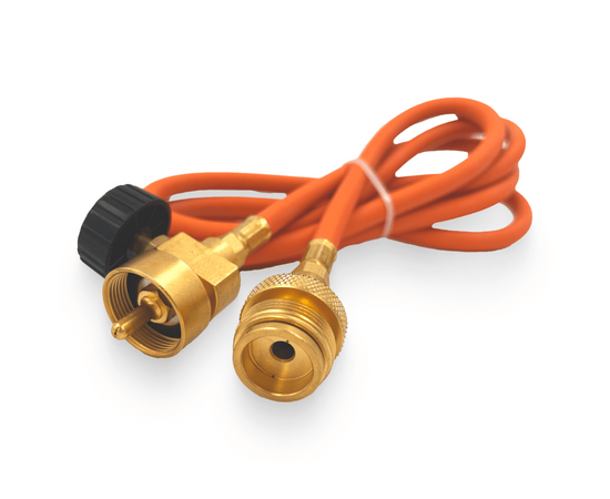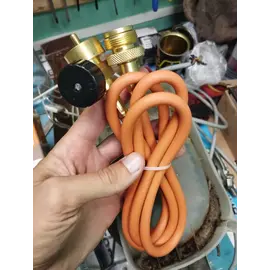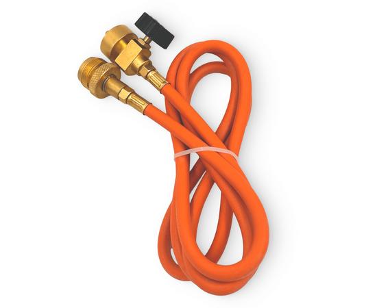Длина шланга 1,5 м. С регулировкой подачи газа. Присоединение к горелке стандарт CGA 600. В комплекте крючок для удобства использования при присоединении баллона.