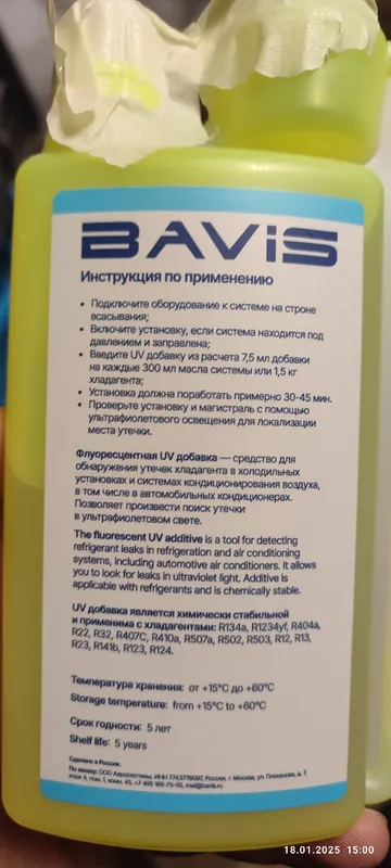 Отзывы о UV добавка для определения утечек фреона BAVIS UVL 250мл. (33 дозы)