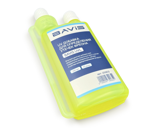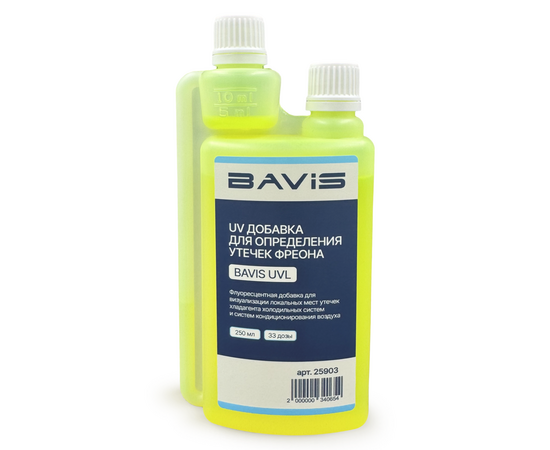 Описание товара UV добавка для определения утечек фреона BAVIS UVL 250мл. (33 дозы)
