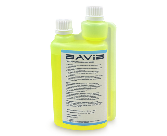 Ультрафиолетовая добавка имеет в своей основе высококачественную смазку, что делает её совместимой с холодильными маслами и, тем самым, исключает возможность изменения свойств масла в системе. Не содержит растворители, что означает, что BAVIS UVL не оказывает негативного воздействия на холодильную установку и заправочное оборудование.