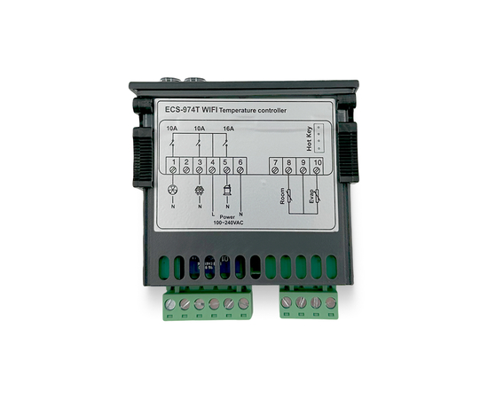 Контроллер ECS-974T Wi-Fi — умный контроллер температуры с поддержкой приложения Smart Life для удалённого управления через смартфон. Подходит для холодильных и морозильных камер, оснащён функциями охлаждения, разморозки, управления вентилятором и сигнализации. Этот цифровой терморегулятор с двумя NTC датчиками обеспечивает точный контроль температуры и стабильную работу холодильного оборудования. Устройство работает как электронный терморегулятор для управления вентиляцией и температурными циклами, подходит для использования в камерах хранения, витринах, холодильных установках.