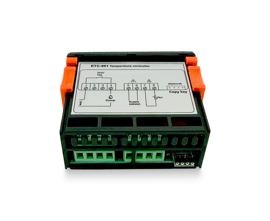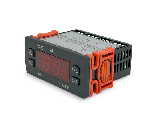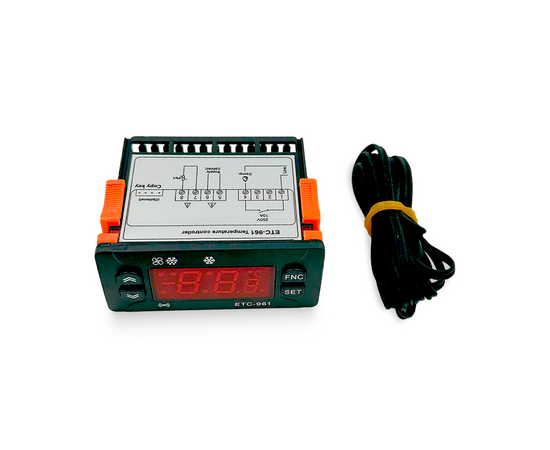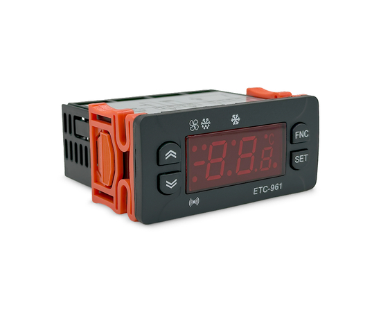 Температурный контроллер ETC-961 оснащен микропроцессором, обеспечивающим точное управление и широкие возможности настройки. Цифровой терморегулятор позволяет задавать различные параметры работы, включая задержку включения компрессора, интервалы разморозки и калибровку датчика.