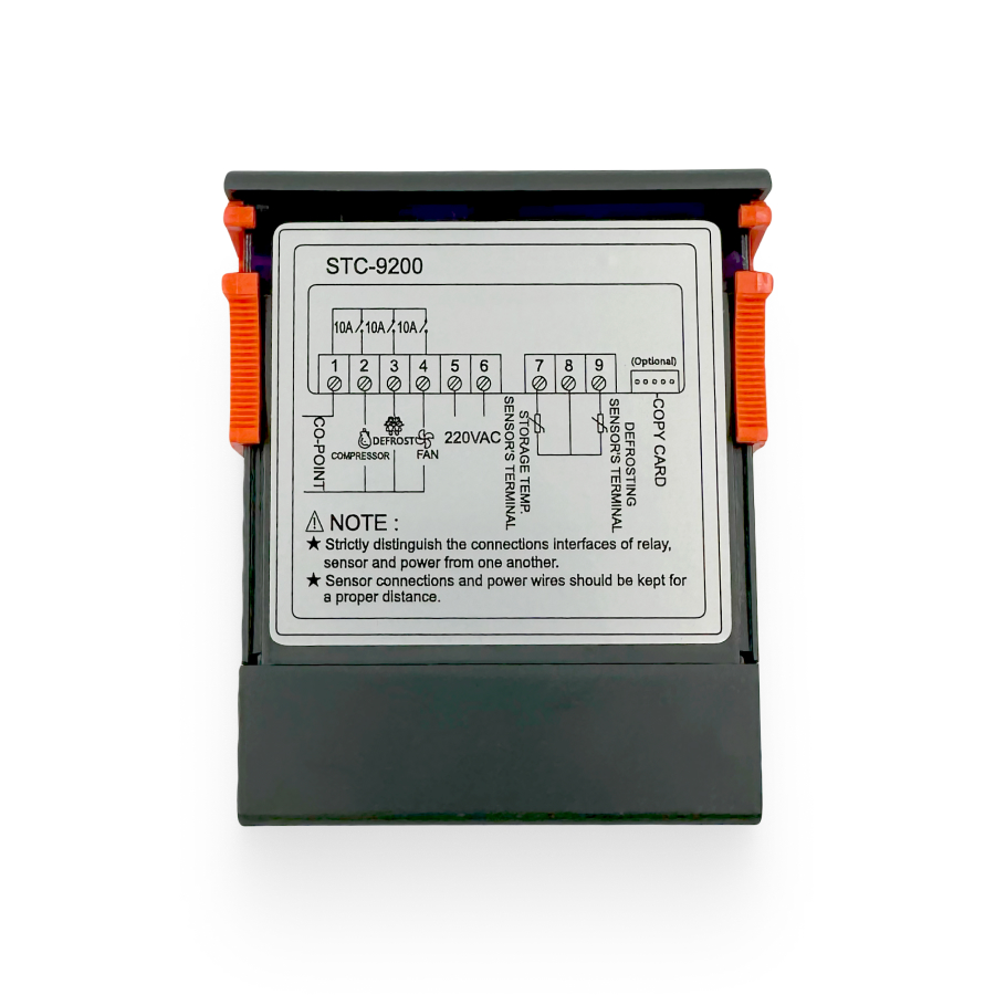 Универсальный контроллер BAVIS STC-9200 для управления температурой средне- и низкотемпературных холодильных систем. Поставляется с тремя выходными реле для управления компрессором, оттайкой – которая может производиться как электронагревателями, так и горячим хладагентом – и вентиляторами воздухоохладителей. Контроллер комплектуется двумя входными датчиками (NTC): один для контроля температуры в камере, другой расположен в воздухоохладителе для контроля температуры прекращения оттайки. Каждый прибор полностью настраивается с помощью специальных параметров, которые могут быть легко запрограммированы с помощью кнопок.