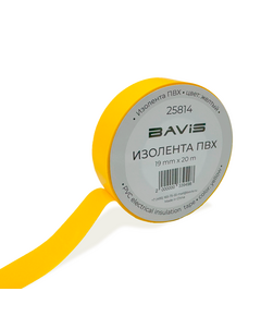 Изолента ПВХ BAVIS применяется при промышленных, строительных и бытовых работах для электроизоляции проводов и кабелей при ремонте и сращивании электрокабелей с неметаллическими оболочками, работающих в статическом состоянии. Ширина 19 мм. Длина 20 м. Цвет жёлтый.