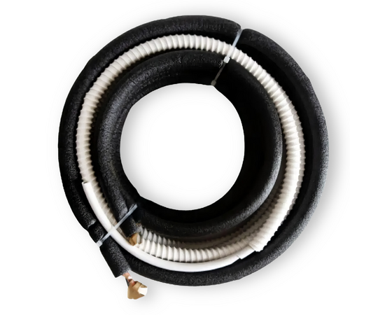Готовая межблочная трасса для самостоятельного монтажа кондиционера/сплит-системы мощностью до 5 кВт. Состоит из готовых медных трубок 1/4" и 3/8" в теплоизоляции с развальцованными концами для герметичного соединения блоков кондиционера, дренажного шланга 5/8" для отвода конденсата от внутреннего блока, межблочного кабеля ВВГнг 4х1.5.