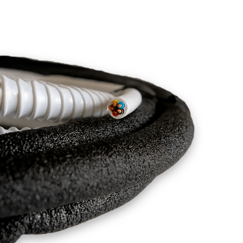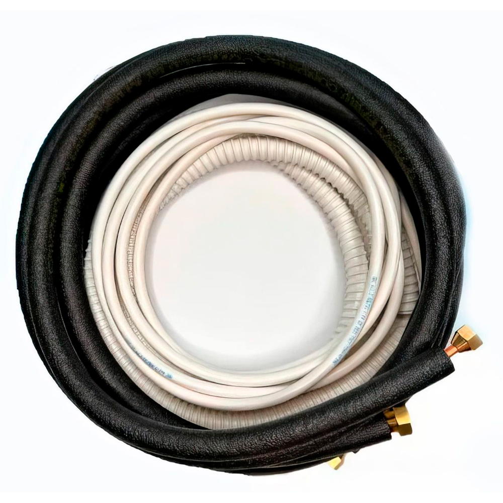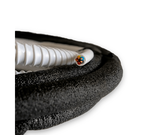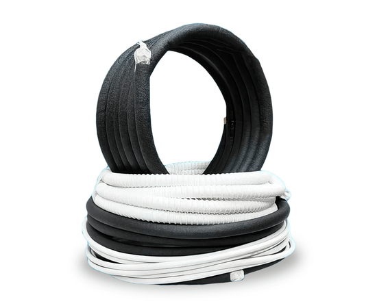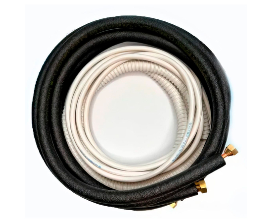 Готовая межблочная трасса для самостоятельного монтажа кондиционера/сплит-системы мощностью от 5 кВт до 8 кВт. Состоит из готовых медных трубок 1/4" и 1/2" в теплоизоляции с развальцованными концами для герметичного соединения блоков кондиционера, дренажного шланга 5/8" для отвода конденсата от внутреннего блока, межблочного кабеля ПВС 5х1.5.