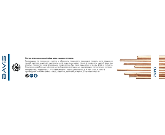 Твердый медный припой BAVIS в виде одного прутка идеально подходит для капиллярной пайки меди и медных сплавов. Специально разработан для пайки медных трубопроводов в холодильных, водопроводных и отопительных системах.