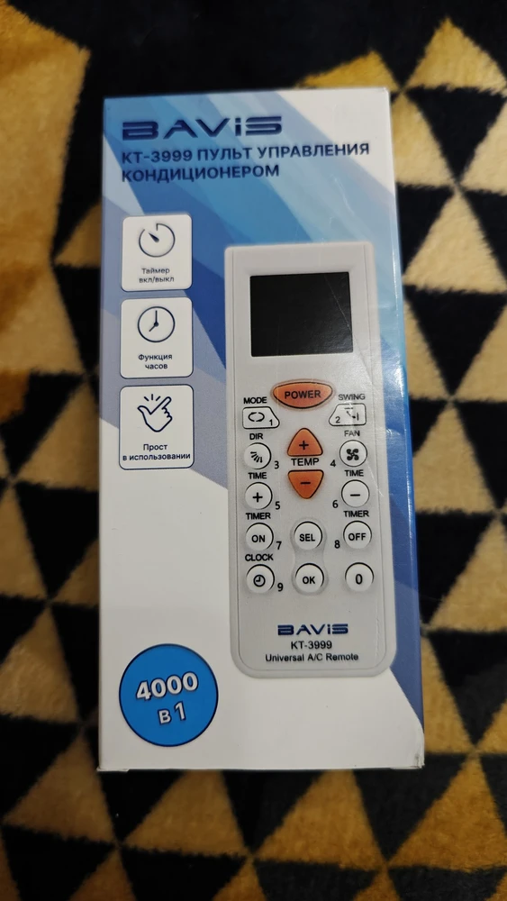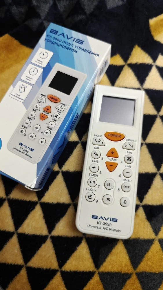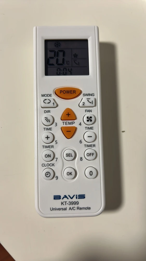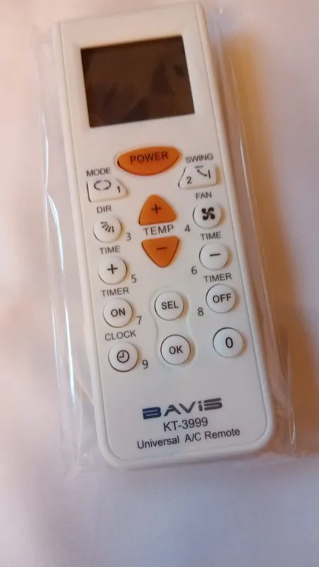 Универсальный пульт управления для кондиционеров BAVIS KT-3999 поддерживает 4000 кодов для управления моделями кондиционеров различных производителей. Подключение происходит в несколько кнопок и занимает меньше минуты. Подходит для 98% кондиционеров.